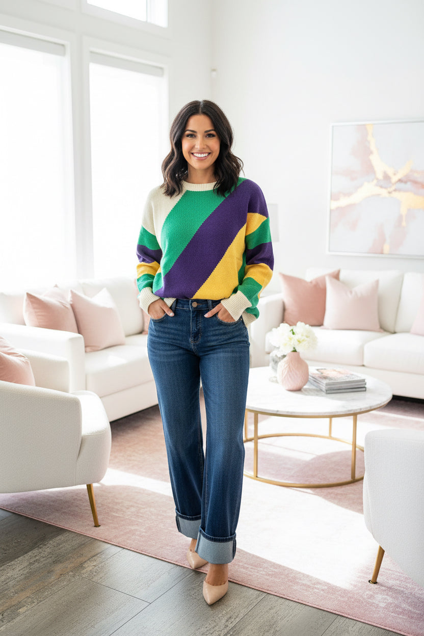 Color Block Stripe Mardi Gras Sweater
