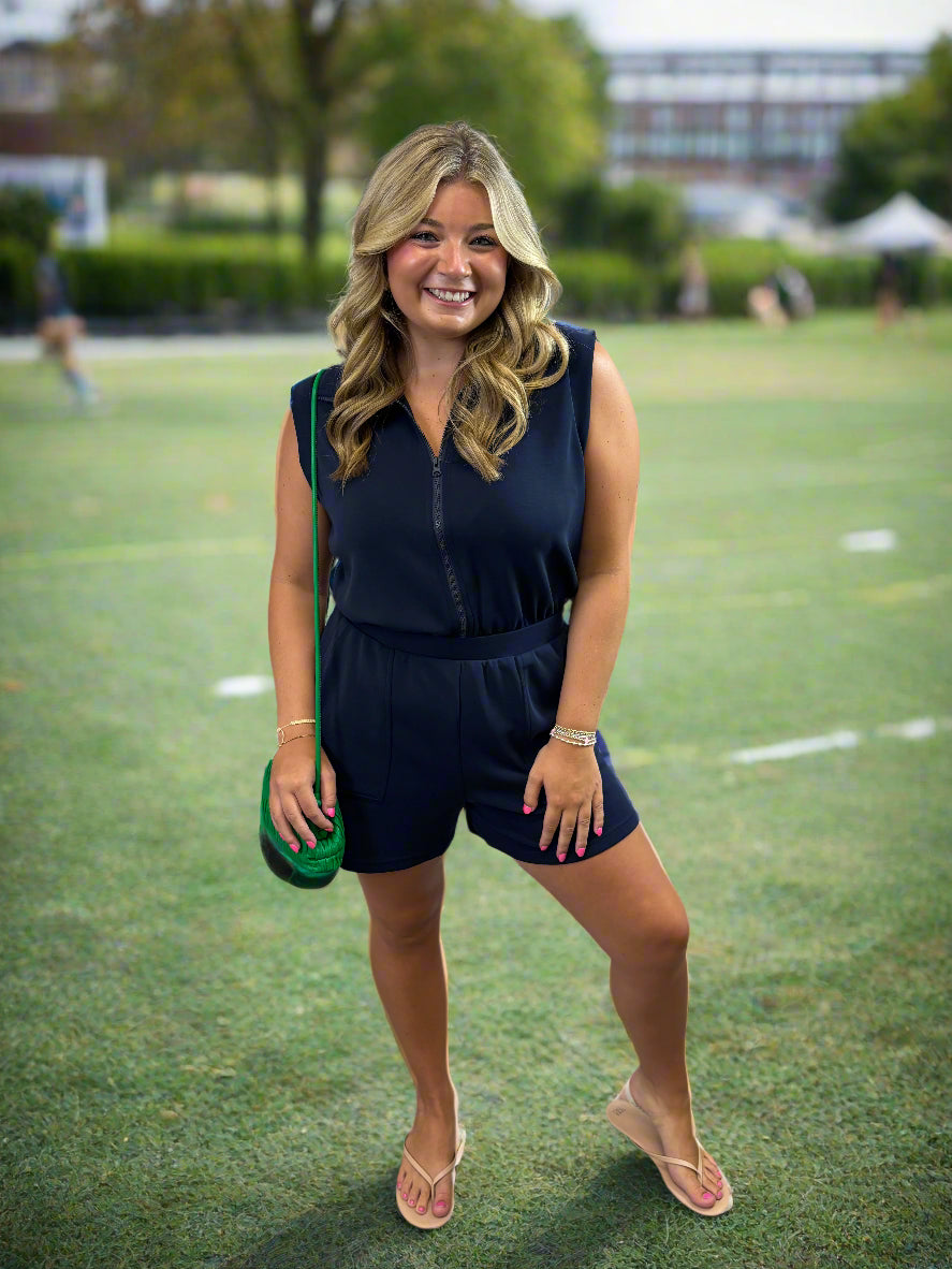 Navy Zip Up Front Romper