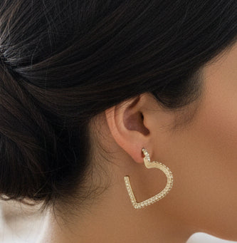 Elevate your look with these 1.5" Rhinestone Heart Hoops, designed for effortless elegance. Their lightweight construction ensures comfort throughout the day or evening, making them perfect for both everyday wear and special occasions. Add a subtle sparkle to your ensemble with these refined and comfortable hoops.