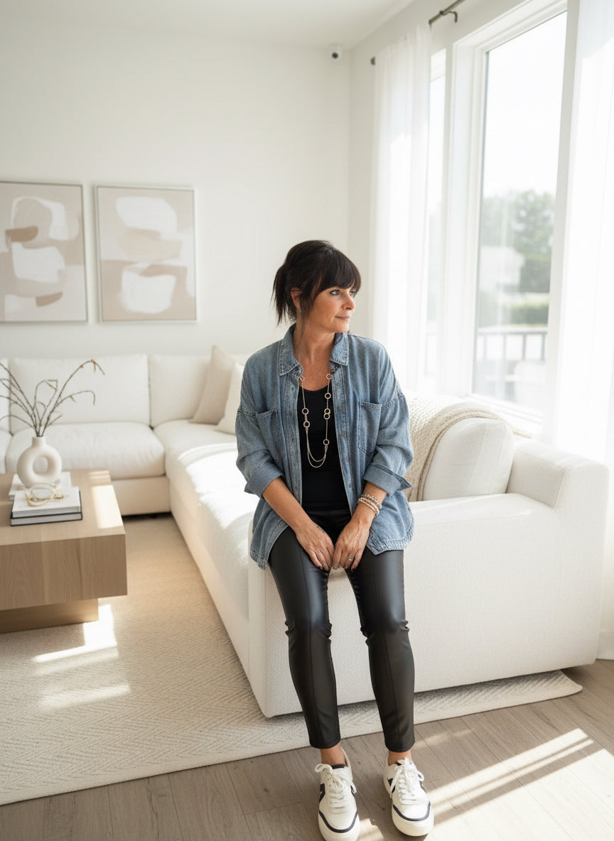 Effortlessly chic and versatile, this washed chambray button-down combines relaxed elegance with practical style. The oversized silhouette and drop shoulder seaming create a refined, contemporary fit that flatters all shapes. Featuring functional chest pockets and a soft, lived-in fabric, it transitions seamlessly from layered styling to standalone wear. Perfect as a polished top or lightweight jacket, this piece embodies the understated sophistication of modern wardrobe essentials.